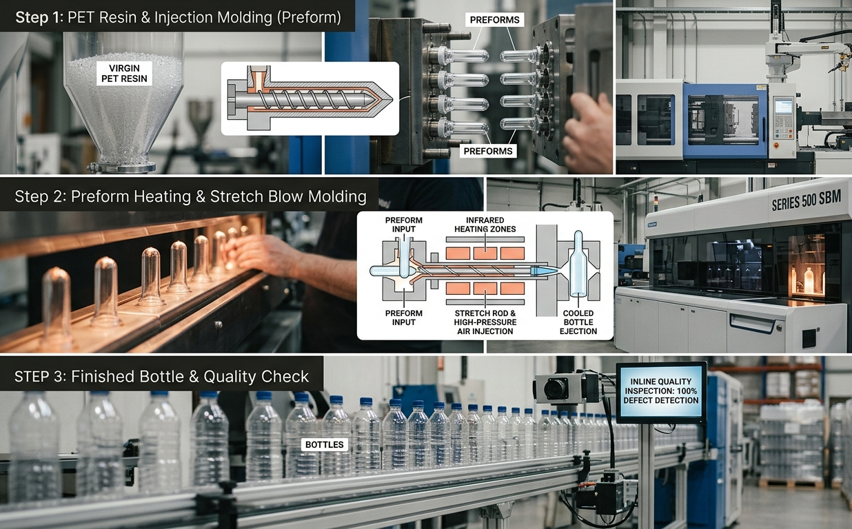 We manufacture durable and cost-effective containers using extrusion blow molding, ideal for industrial and commercial applications. This process creates uniform, high-strength bottles and jars that maintain product integrity during storage, transport, and daily use.